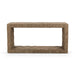 Make a bold, natural statement with this handcrafted console table. Woven seagrass panels envelop a sturdy mahogany and plywood frame, creating a striking geometric texture. The open silhouette adds lightness and flow, while the earthy tones bring organic warmth to any space. This basket-weave console table is perfect for entryways, living rooms, or dining spaces, an artful blend of natural materials and modern design.