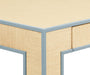Worlds Away - Collins Square Two Drawer Game Table With Matte Light Blue Lacquer Edging And Inset Natural Grasscloth - COLLINS LB