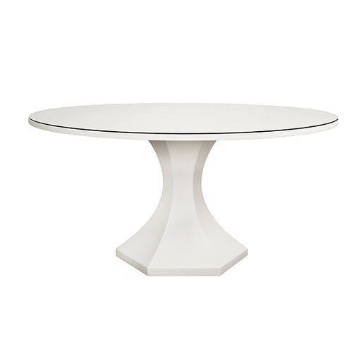 Worlds Away - Bryce Round Dining Table With Hexagonal Tapered Base in White Textured Linen - BRYCE WH