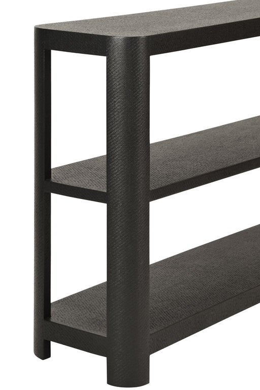 Worlds Away - Campbell Open Shelf Console With Three Bottom Drawers And Square Satin Brass Hardware In Dyed Green Grasscloth - CAMPBELL GR