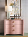 Worlds Away - Cora Curved Front Chest With Three Drawers In Textured Pink Linen With Satin Brass Ring Hardware - CORA PI