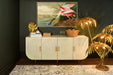 Worlds Away - Deluca Four Door Buffet With Curved Bottom Corners And Stone Hardware In Faux Parchment - DELUCA PAR