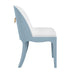 Graceful curves and soft textures define the Sadie LB dining chair, designed with both comfort and everyday use in mind. Upholstered in performance white linen, the generously cushioned seat is framed in textured light blue linen for a subtle touch of color. A satin brass ring on the back isn’t just decorative — it offers a convenient way to pull the chair out with ease, helping to keep the fabric clean. Perfect for dining tables and daily gatherings, this chair combines refined style with lasting comfort.
