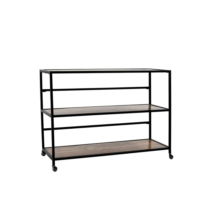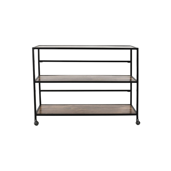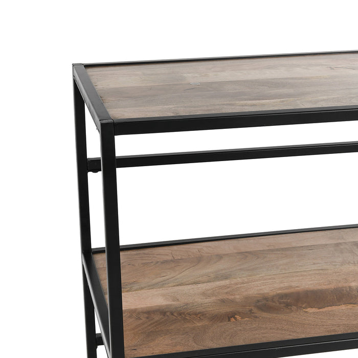 - Iron with Black Finish and Mango Wood Shelves Material