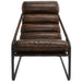 Relish the supple feel and exceptional durability of top grain leather with this chic chair featuring a black iron frame, channel back, and richly dyed leather upholstery.