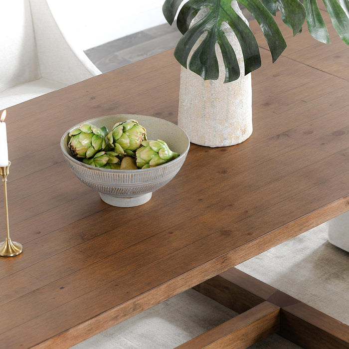 - Rich brown color in a modern farmhouse style table