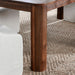 - Rounded exterior legs provides a soft aesthetic to this dark wood table