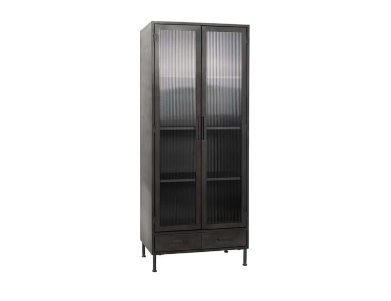 Classic Home - Nore Metal/Glass 2 Door 2 Drawer Tall Cabinet Blackened Steel - 52010941