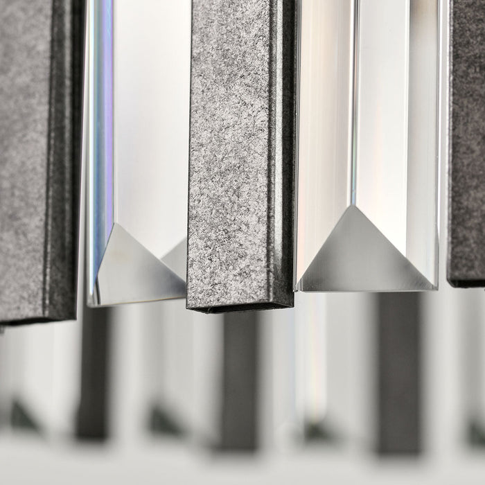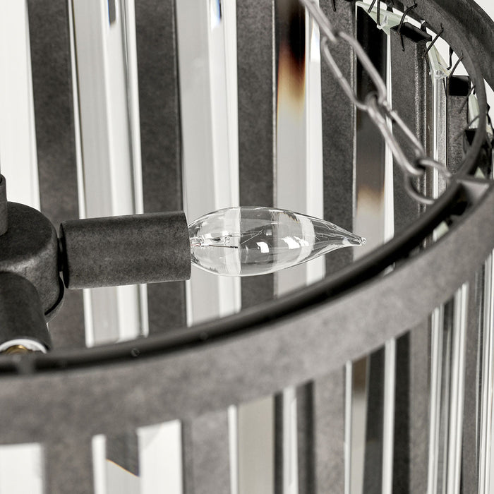 Olympia Chandelier is made with an iron frame and hanging glass prisms that add a shimmering glow to any space. Timeless in its beauty, Olympia will easily fit into classic and contemporary interiors.