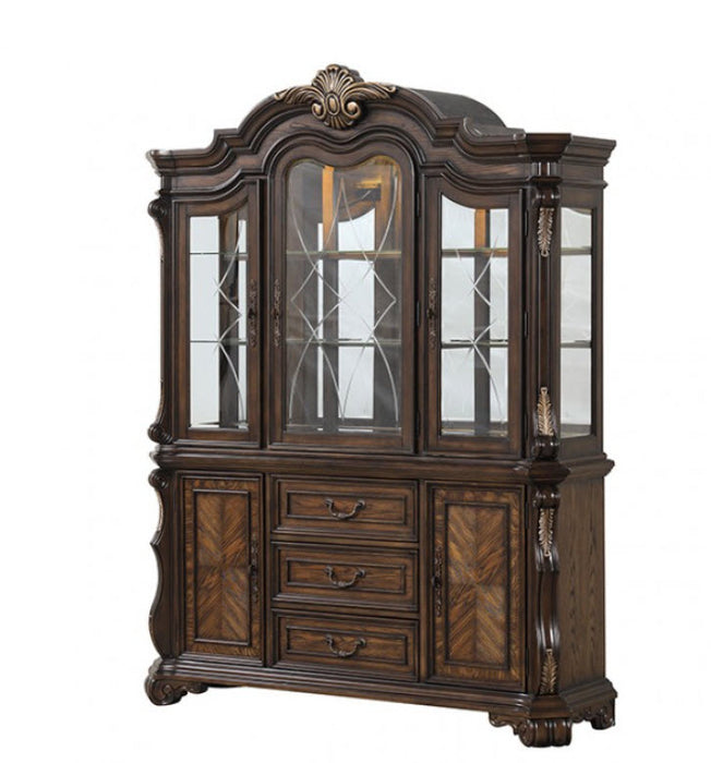- Set Includes Dining Table, 6 Side Chair, 2 Arm Chair, Curio with Hutch and Buffet