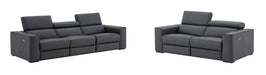 Visually Clean Lines and spacious seats set the Picasso apart from the standard. The Picasso is crafted in Premium Top grain Leather all around and features power recliners for your convenience and comfort-ability. The sofa includes 2 power end recliners and one stationary armless chair. The love seat is available in two versions, with or with out a console and 2 power end recliners. Available in silver grey, dark grey, caramel & blue grey.