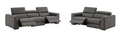 Visually Clean Lines and spacious seats set the Picasso apart from the standard. The Picasso is crafted in Premium Top grain Leather all around and features power recliners for your convenience and comfort-ability. The sofa includes 2 power end recliners and one stationary armless chair. The love seat is available in two versions, with or with out a console and 2 power end recliners. Available in silver grey, dark grey, caramel & blue grey.