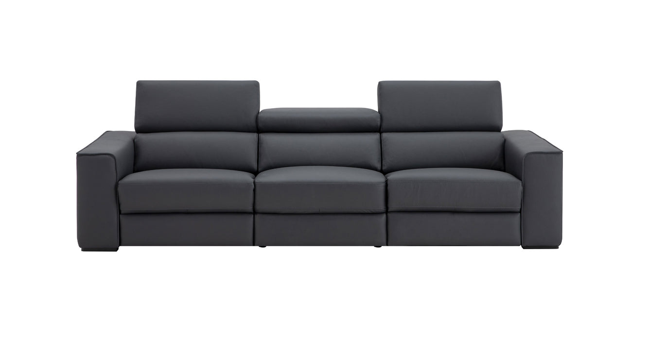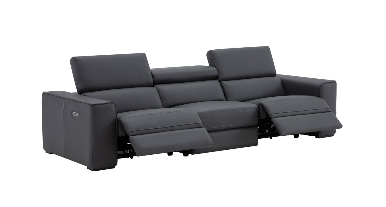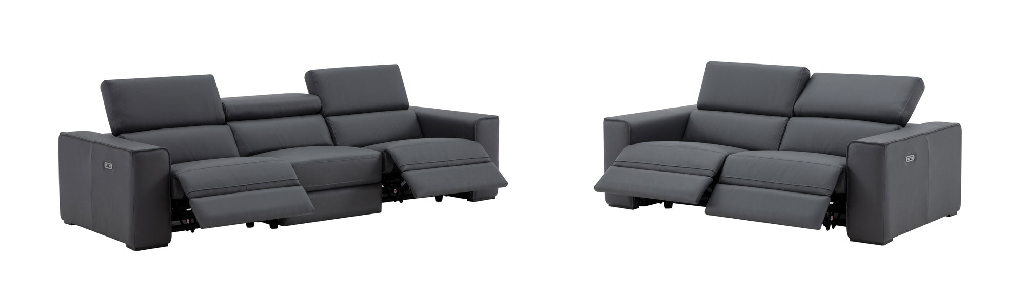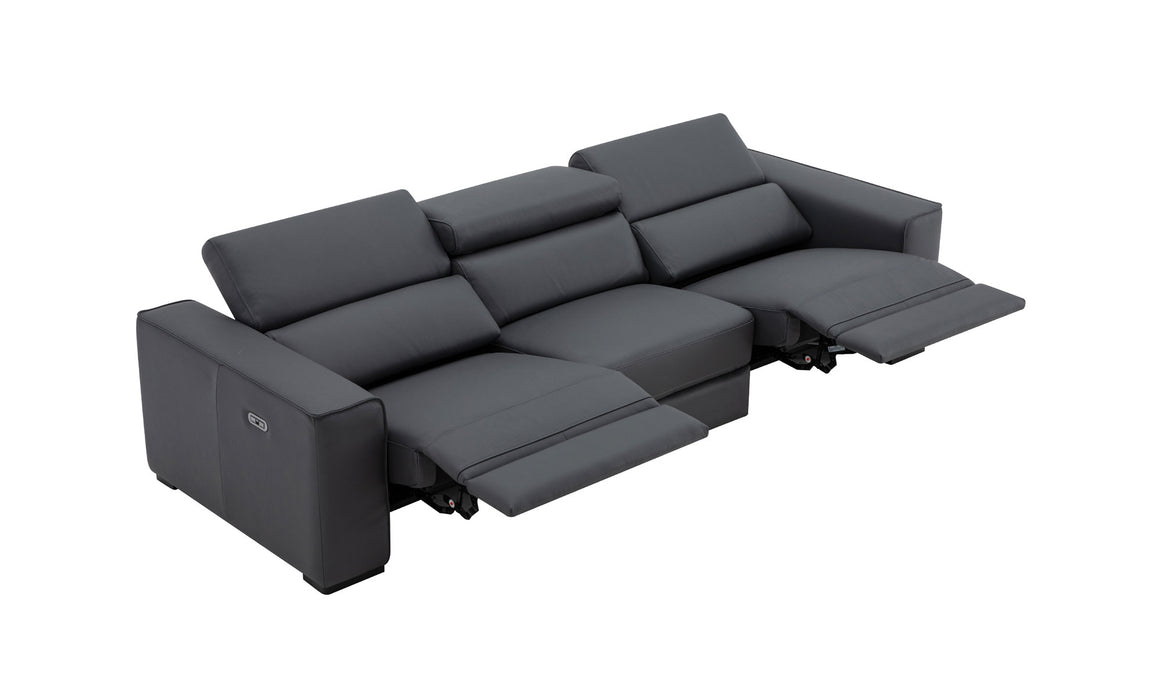 Visually Clean Lines and spacious seats set the Picasso apart from the standard. The Picasso is crafted in Premium Top grain Leather all around and features power recliners for your convenience and comfort-ability. The sofa includes 2 power end recliners and one stationary armless chair. The love seat is available in two versions, with or with out a console and 2 power end recliners. Available in silver grey, dark grey, caramel & blue grey.