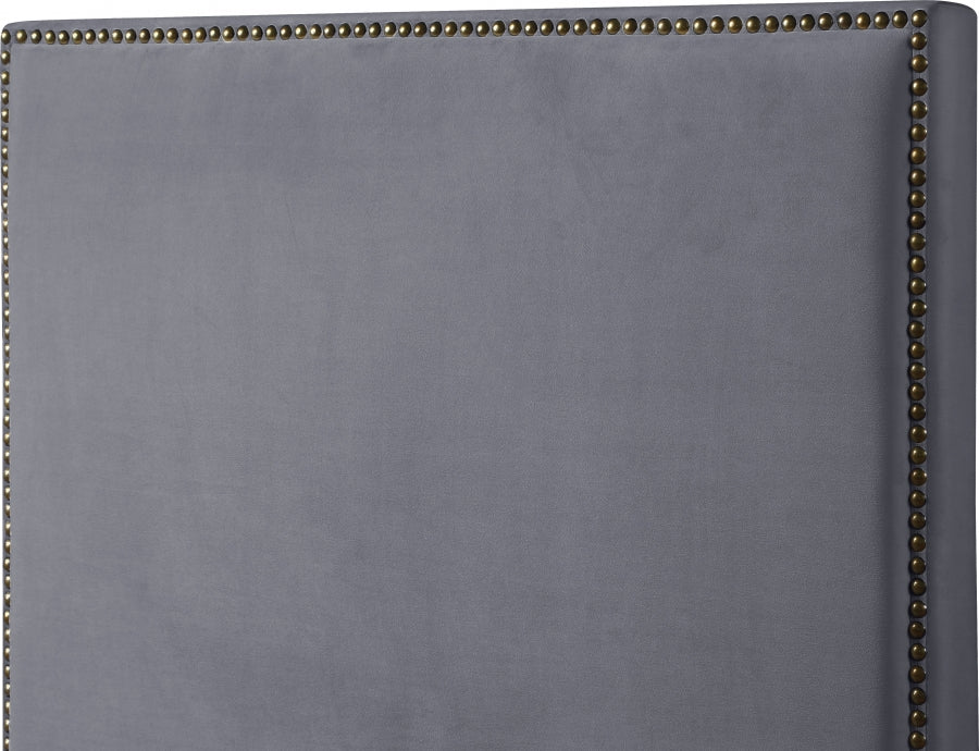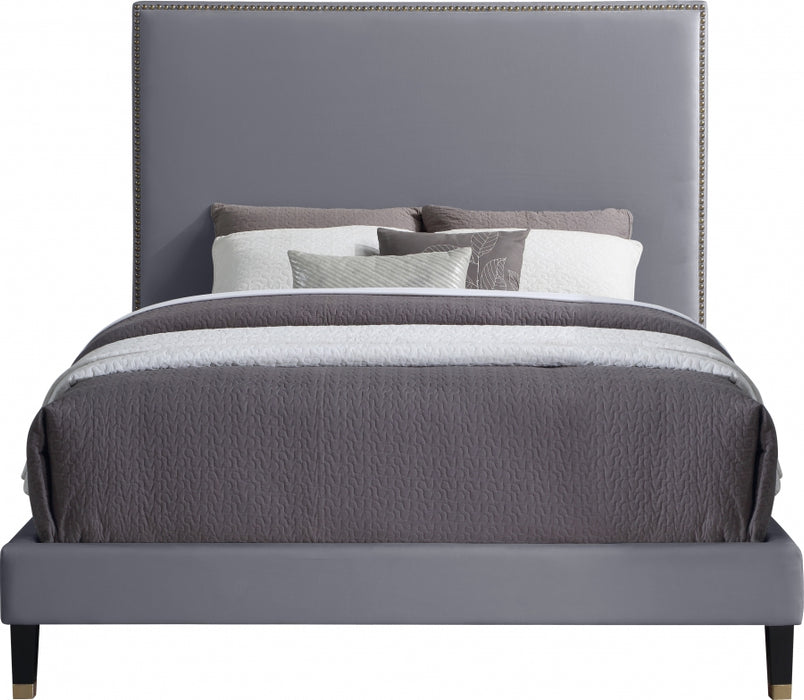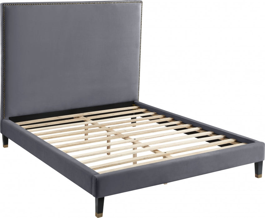 Meridian Furniture - Harlie Velvet Queen Bed in Grey - HarlieGrey-Q