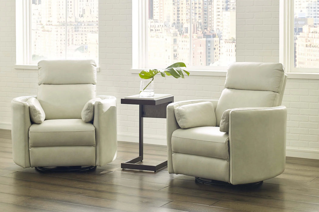 Fashionable and functional, these stylish swivel chairs ensure you never miss any of the action or conversation. Perfect for relaxing at the end of a long day, this model features a soothing gliding motion and smooth power reclining for ultimate comfort.
