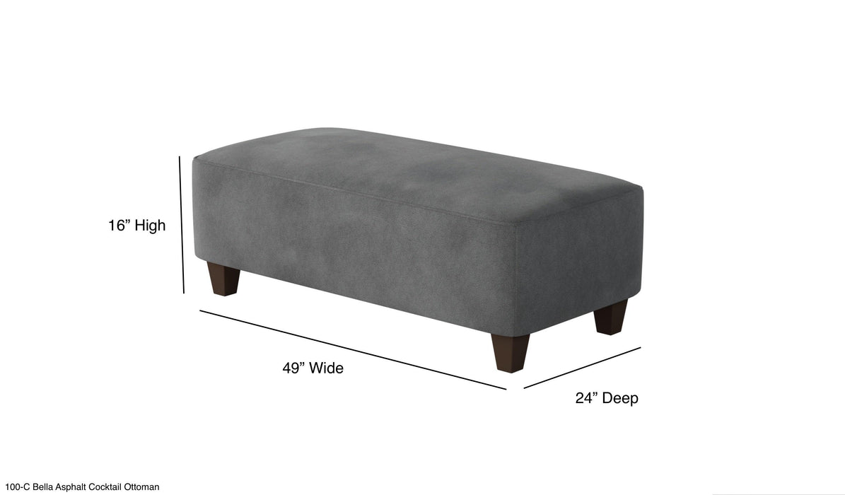 Southern Home Furnishings - Bella Asphalt Cocktail Ottoman in Grey - 1100-C Bella Asphalt-MTO