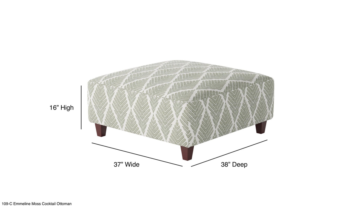 Southern Home Furnishings - Emmeline Moss Cocktail Ottoman in Multi - 109-C Emmaline Moss-MTO