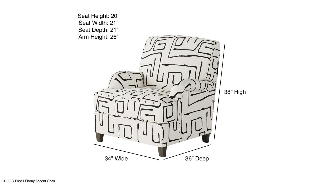 Southern Home Furnishings - Fossil Ebony Accent Chair in Black/White - 01-02-C Fossil Ebony-MTO