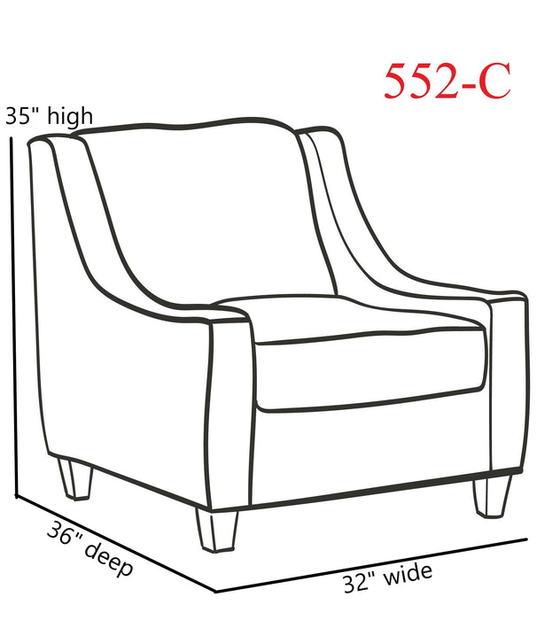 'The 552 Mara Patina accent chair is a very elegant occasional chair that features a tight back with a loose, reversible seat cushion that prolongs the life of the fabric as well as the seat core. With sloping low profile track arms that add grace and elegance to the coffee finish tapered wood legs. The Bryant Sahara chair is a beautiful accent chair to our Wowza Sand group. The material is 100% Polyester making it not only beautiful but also extremely durable. Due to lighting and monitor differences, actual colors and finishes may vary slightly from what appears online