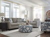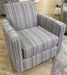 The Oakcreek Denim Swivel Glider chair features a tight back, track arms with box border welt and a loose seat cushion. With the seat cushion being loose and reversible, it can be rotated to prolong the life of the material as well as the cushion core. It also allows for a more comfortable sit than a tight seat. This swivel glider chair is an attractive stand-alone chair, but also will go with most any transitional sofa or blends with our Dano Tweed Collection. The fabric is not only beautiful but also extremely durable. Looking for something with a little more range in motion? Our beautiful swivel gliders administer a 360 degree turn while also providing an easy rocking motion. Due to lighting and monitor differences, actual colors and finishes may vary slightly from what appears online