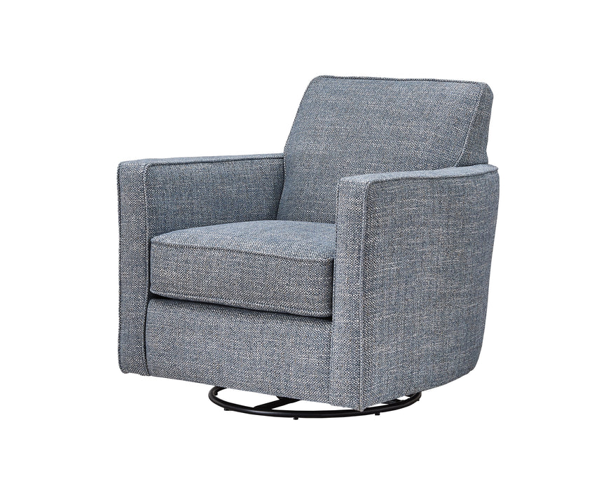 The Posey Surf Swivel Glider chair features a tight back, track arms with box border welt and a loose seat cushion. With the seat cushion being loose and reversible, it can be rotated to prolong the life of the material as well as the cushion core. It also allows for a more comfortable sit than a tight seat. This swivel glider chair is an attractive stand-alone chair, but also will go with most any transitional sofa or blends with our Jonah Foam Collection. The fabric is not only beautiful but also extremely durable. Looking for something with a little more range in motion? Our beautiful swivel gliders administer a 360 degree turn while also providing an easy rocking motion. Due to lighting and monitor differences, actual colors and finishes may vary slightly from what appears online