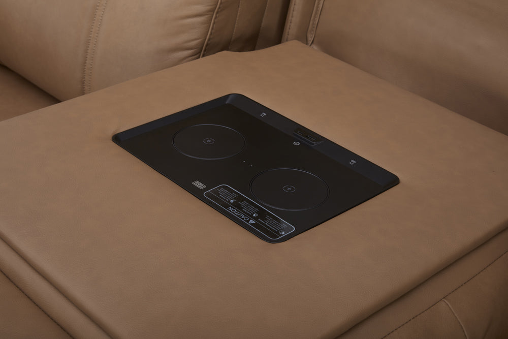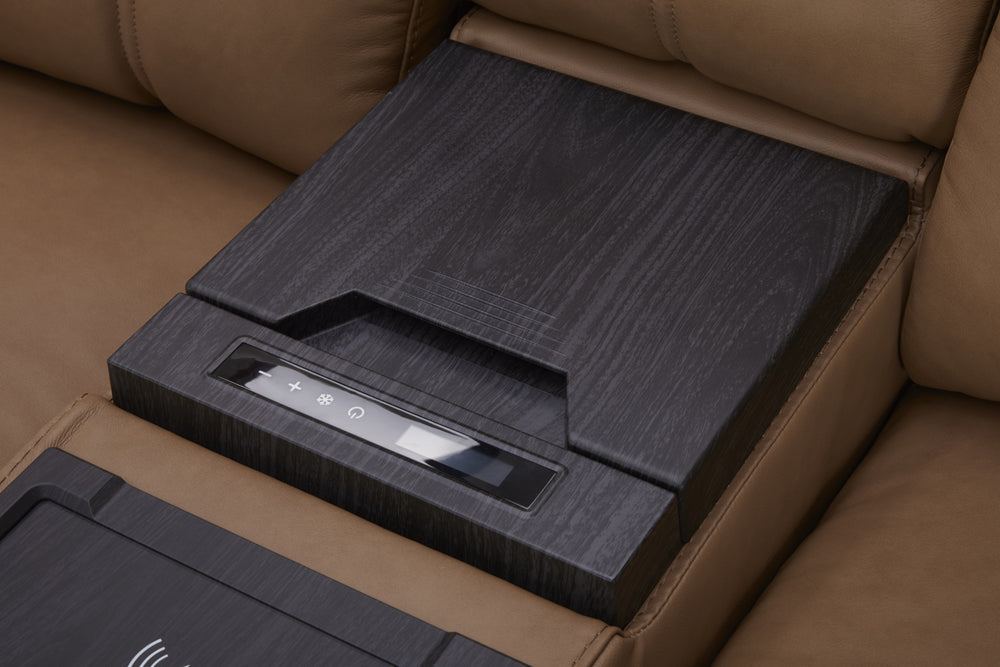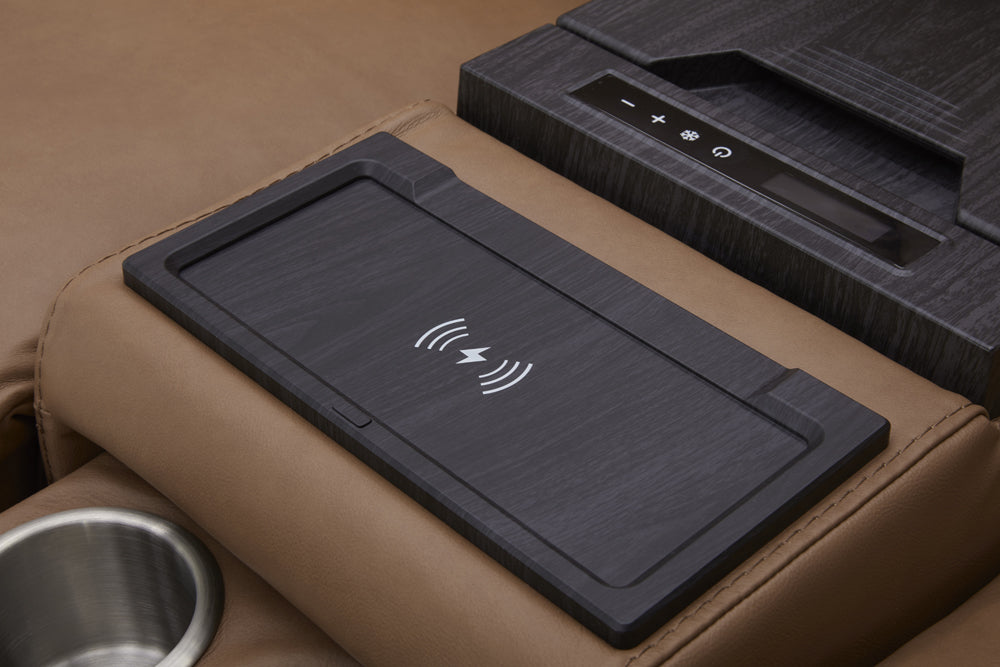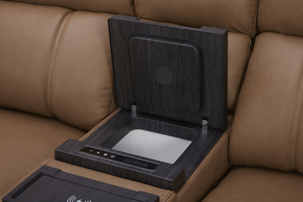 - Set Includes Triple Power Sofa with Power Drop Down Table, Triple Power Console Loveseat with Cooling Unit and Triple Power Wallhugger Recliner