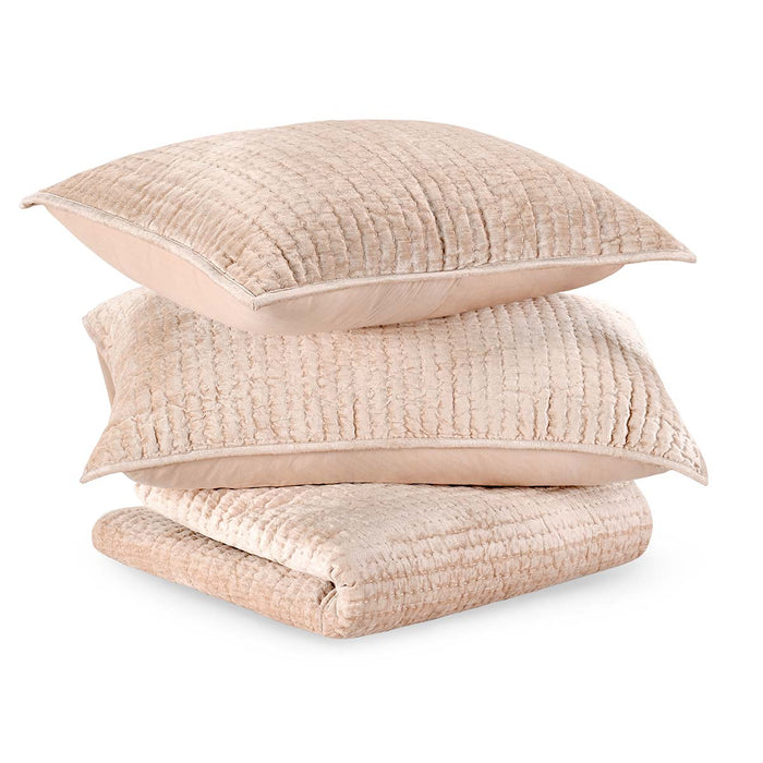 Villa By Classic Home - - Bari Velvet Nude 4PC King Quilt Set- BEDQ529K