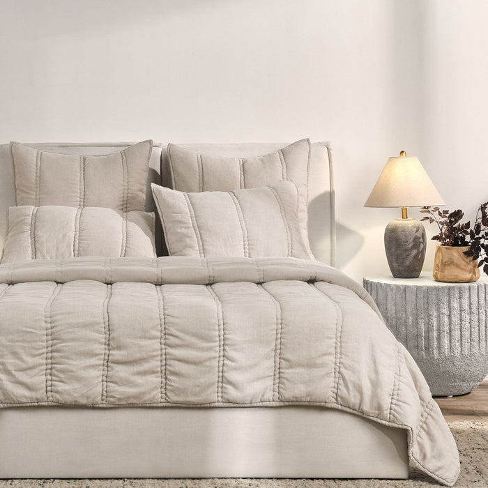 Villa By Classic Home - - Rowen Taupe Quilt Pillows in White (Set of 2) - V290154